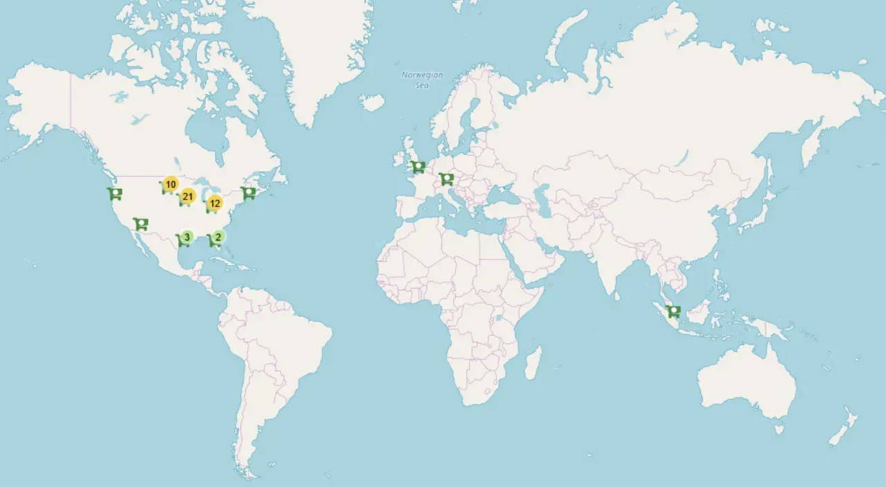 Stores are sorted Alphabetically by State with the USA first, then Worldwide stores.
